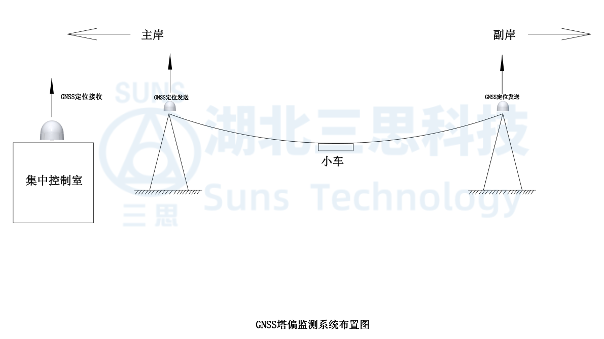 通過在塔頂安裝GNSS北斗定位基站來實現(xiàn)塔身偏移監(jiān)測;通過安裝在集中控制室的定位主站接收到塔頂傳來的信號給PLC采集器,PLC系統(tǒng)計算出塔身偏移的位移數(shù)據(jù)并顯示在集中監(jiān)控系統(tǒng)上。