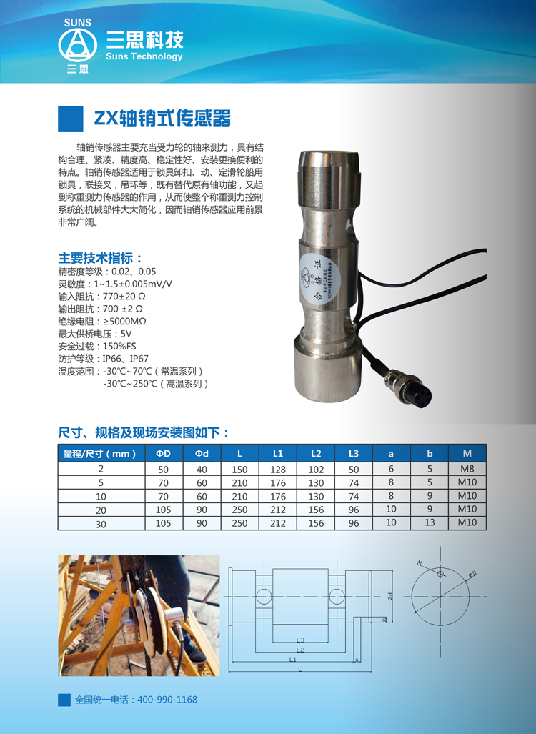 軸銷傳感器主要充當(dāng)受力輪的軸來測力,具有結(jié)構(gòu)合理、緊湊、精度高、穩(wěn)定好、安裝更換便利的特點(diǎn)。軸銷傳感器適用于鎖具卸扣、動、定滑輪船用鎖具、聯(lián)接叉、吊環(huán)等,既有替代原有軸功能,又起到稱重測力傳感器的作用,從而使整個(gè)稱重測力控制系統(tǒng)的機(jī)械部件大大簡化,因而軸銷傳感器應(yīng)用前景非常廣闊。