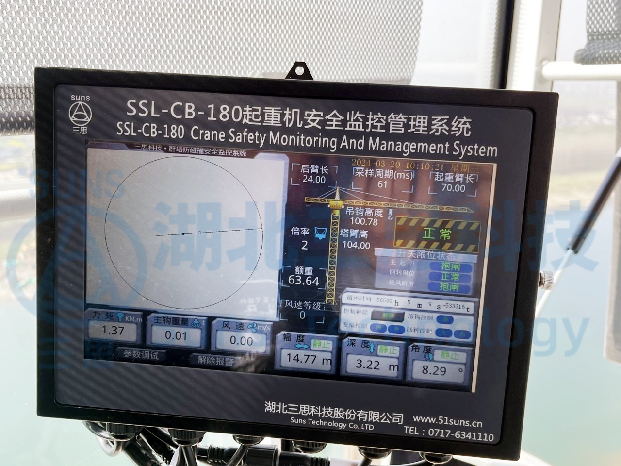 主機(jī)采用10英寸顯示屏,能實(shí)時(shí)顯示工地現(xiàn)場(chǎng)塔機(jī)運(yùn)行狀況,通過(guò)無(wú)線網(wǎng)絡(luò)把各種傳感器采集的參數(shù)實(shí)時(shí)上傳到智慧工地監(jiān)管平臺(tái),實(shí)現(xiàn)系統(tǒng)監(jiān)管。