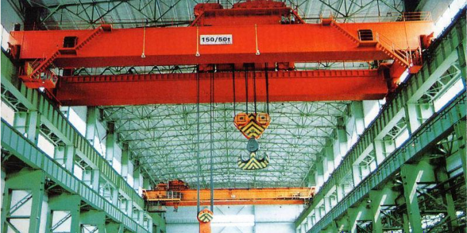橋式起重機(jī)是橫架于車間、倉(cāng)庫(kù)和料場(chǎng)上空進(jìn)行物料吊運(yùn)的起重設(shè)備。由于它的兩端坐落在高大的水泥柱或者金屬支架上,形狀似橋。橋式起重機(jī)的橋架沿鋪設(shè)在兩側(cè)高架上的軌道縱向運(yùn)行,可以充分利用橋架下面的空間吊運(yùn)物料,不受地面設(shè)備的阻礙。它是使用范圍最廣、數(shù)量最多的一種起重機(jī)械。