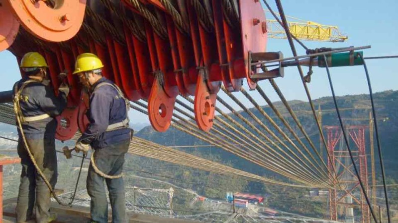 纜索起重機(jī)是指以柔性鋼索作為大跨距架空承載構(gòu)件,供懸吊重物的載重小車在承載索上往返運(yùn)行,具有垂直運(yùn)輸和水平運(yùn)輸功能。